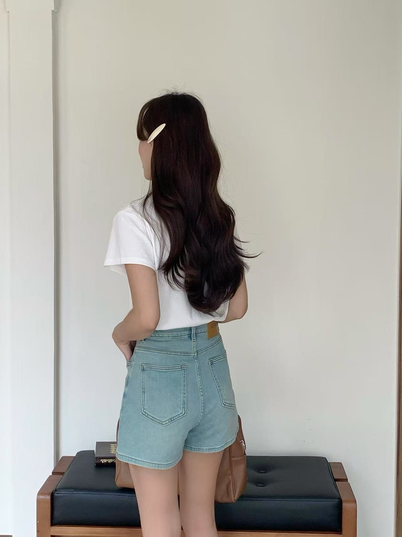 (这个款属于中高腰版型, A字有弹力~ 属于比较舒适的裤型)