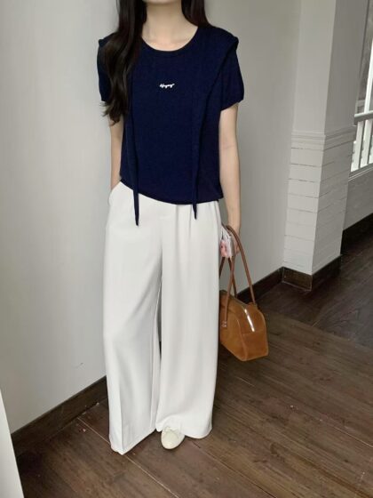 • Shawl Overlay Two-in-One Knit Top (Navy)